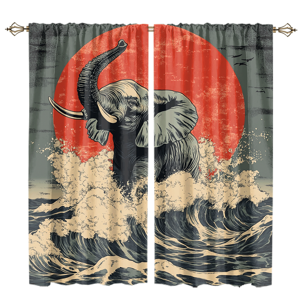 Abstract Japanese Style Elephant Rustic Wildlife Elephant Japan Great Wave Red Sun CGCL 1 1