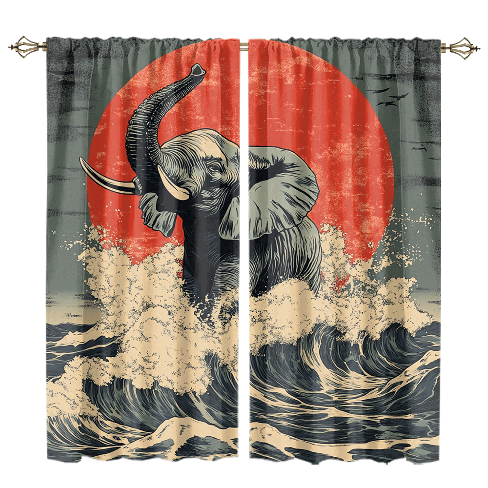 Abstract Japanese Style Elephant Rustic Wildlife Elephant Japan Great Wave Red Sun CGCL 1 5
