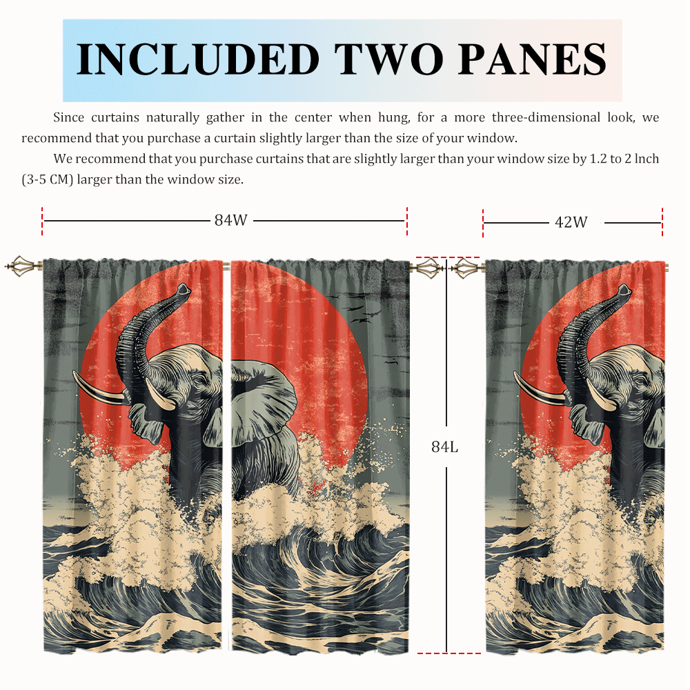Abstract Japanese Style Elephant Rustic Wildlife Elephant Japan Great Wave Red Sun CGCL 2 8
