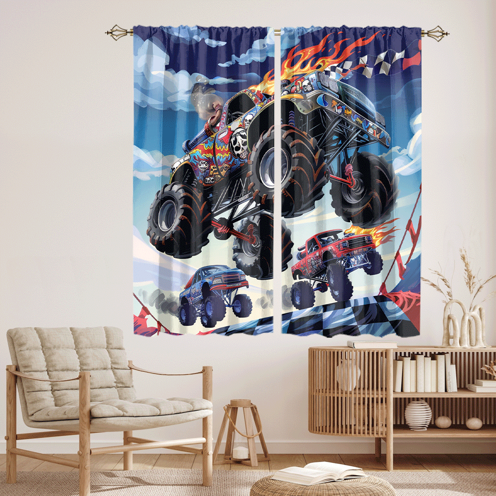 Cool Cartoon Monster Truck Modern Racing Black White Plaid Anime Monster Trucks CGCL 4