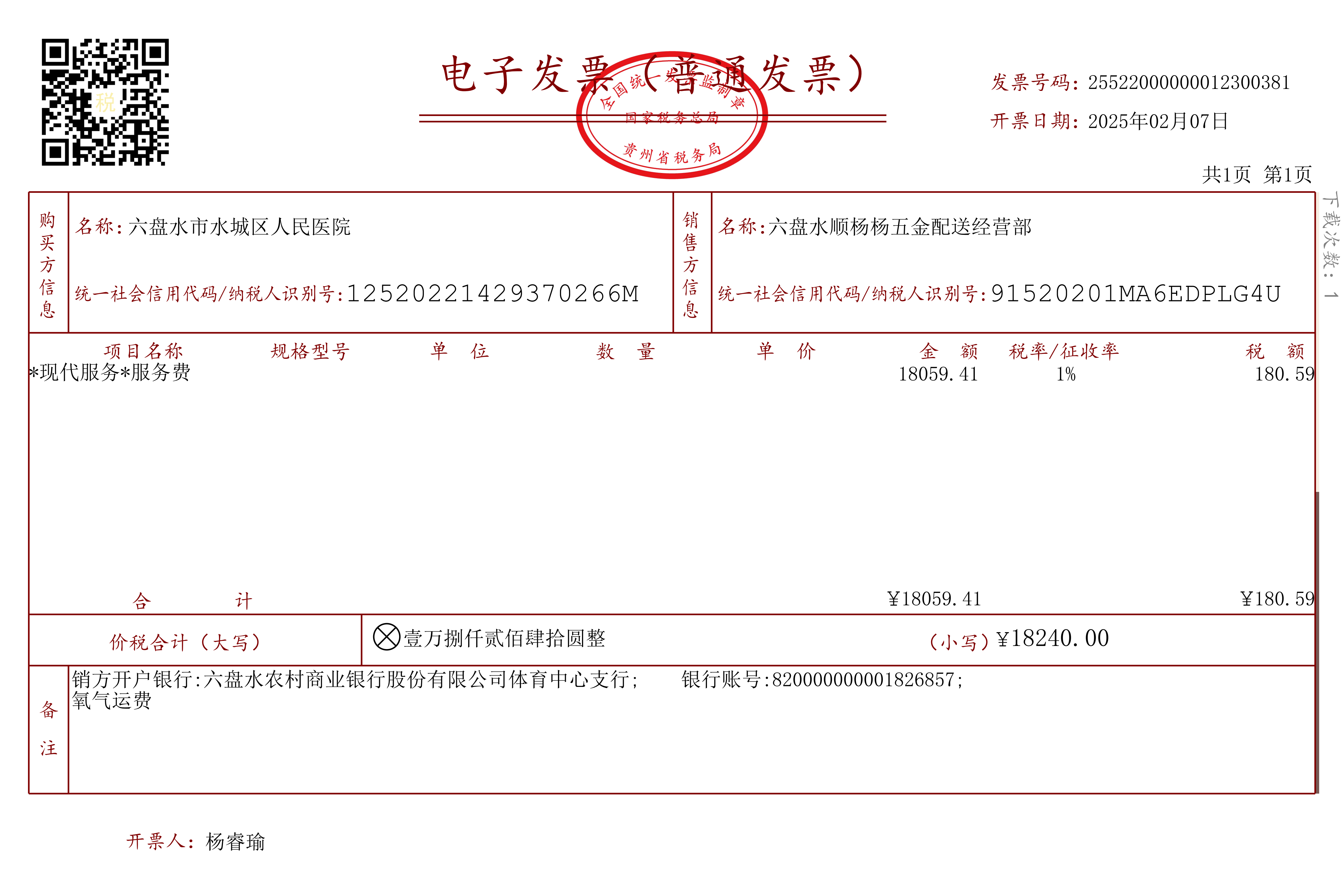 dzfp 25522000000012300381 六盘水市水城区人民医院 20250207105307 01