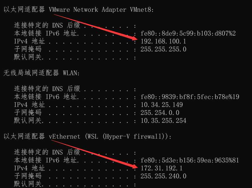 ipconfig命令查看ip